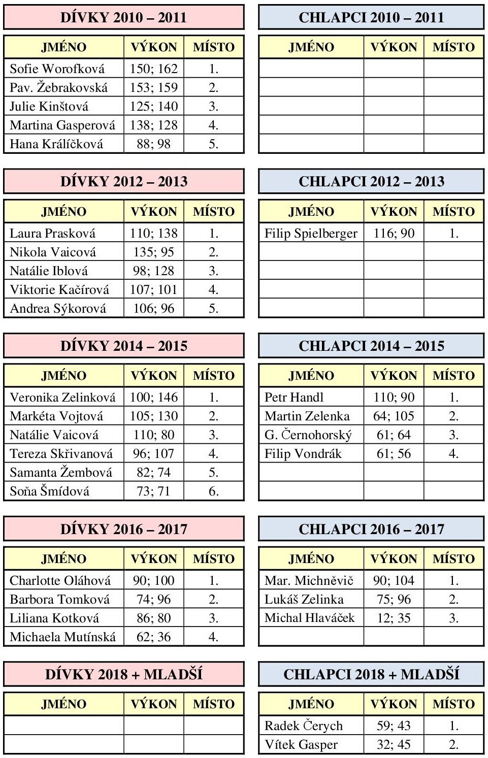 30 mladých sportovců dosáhlo těchto výsledků: