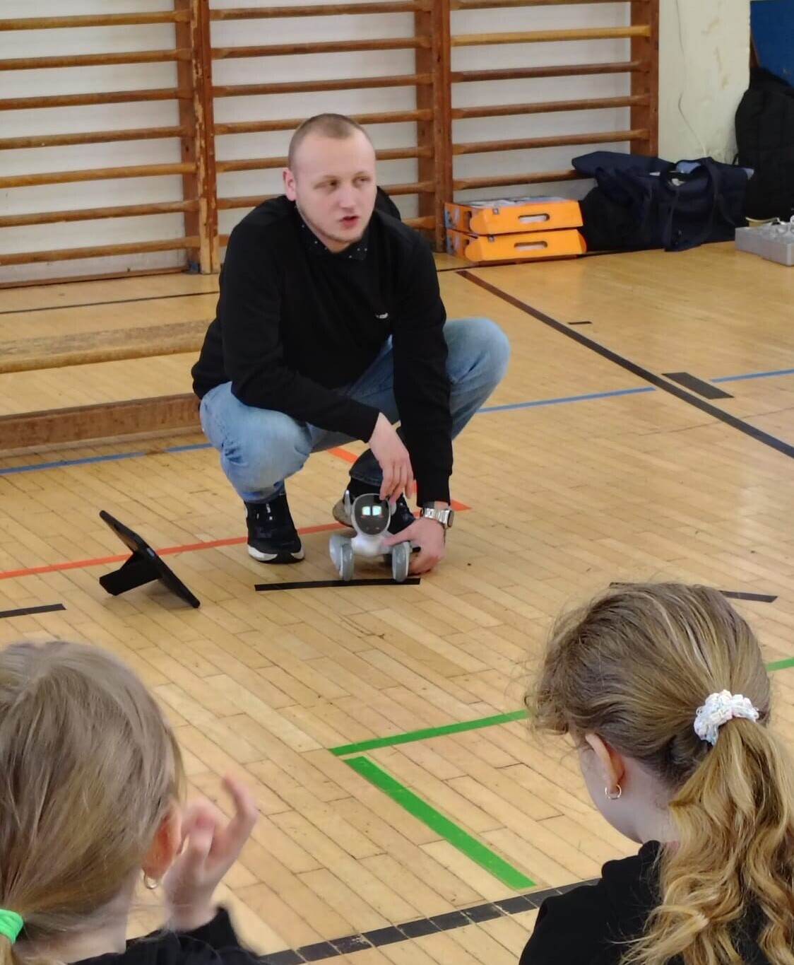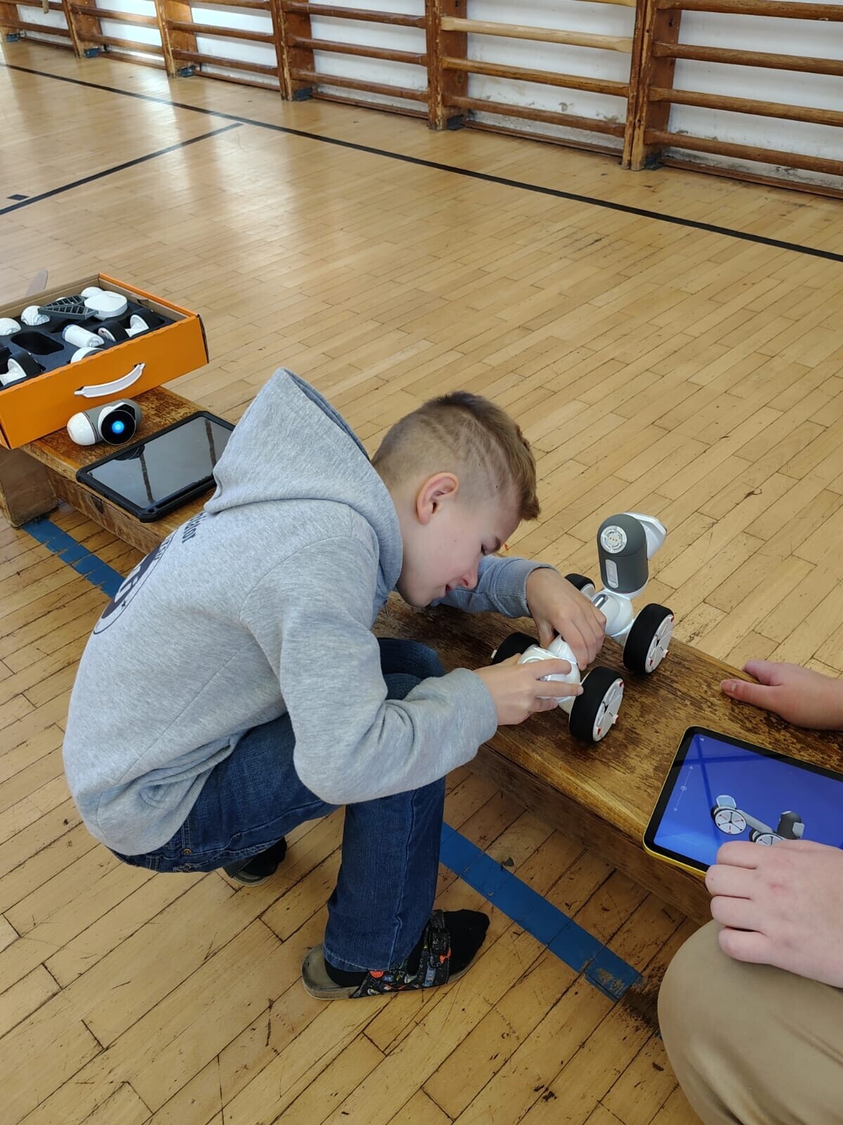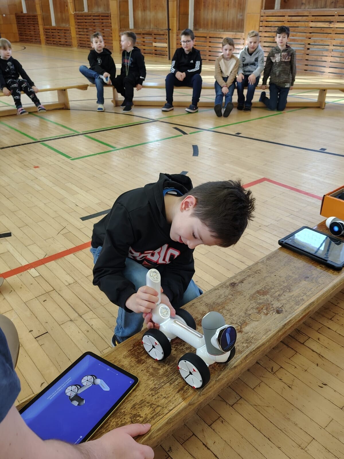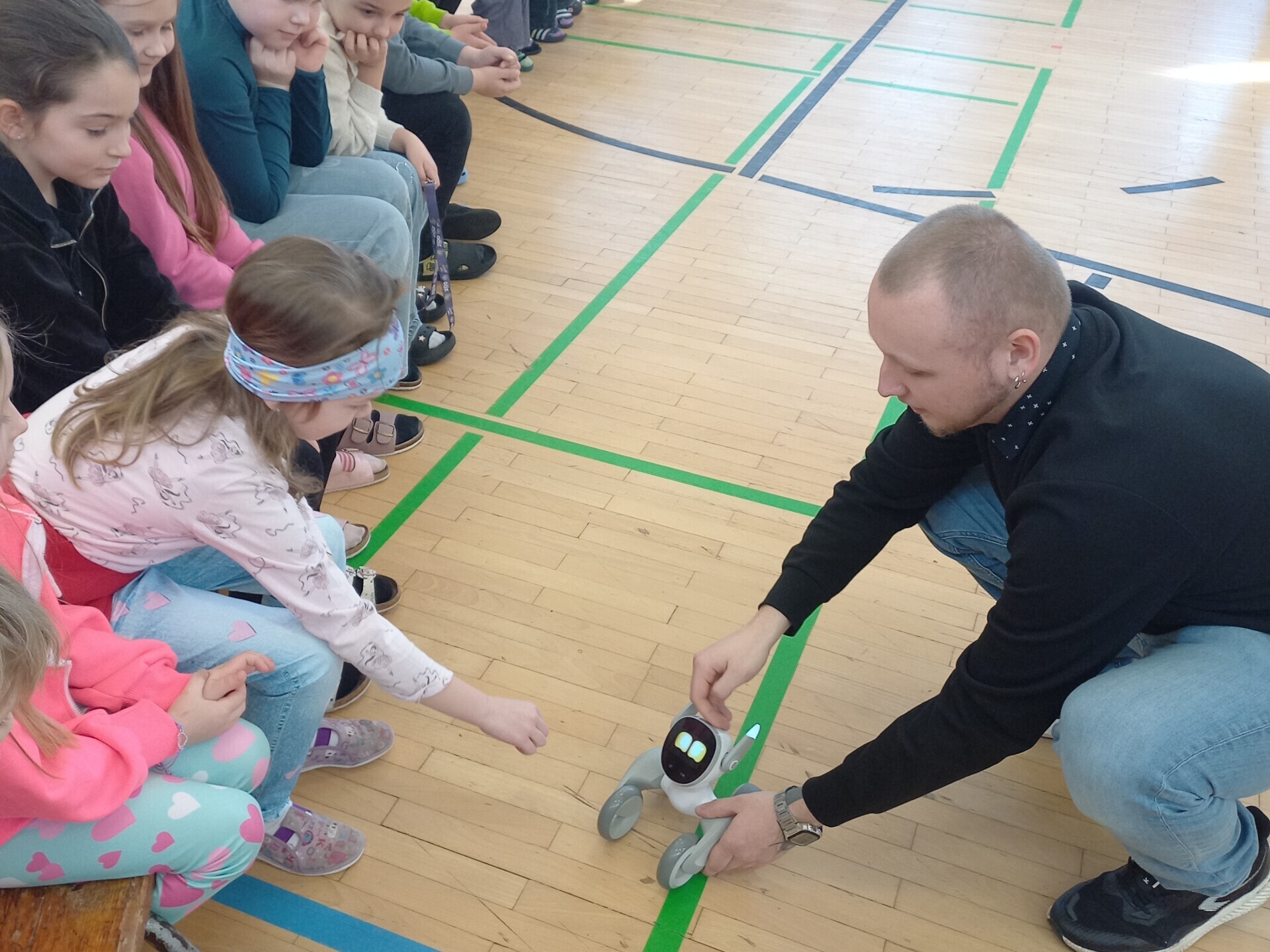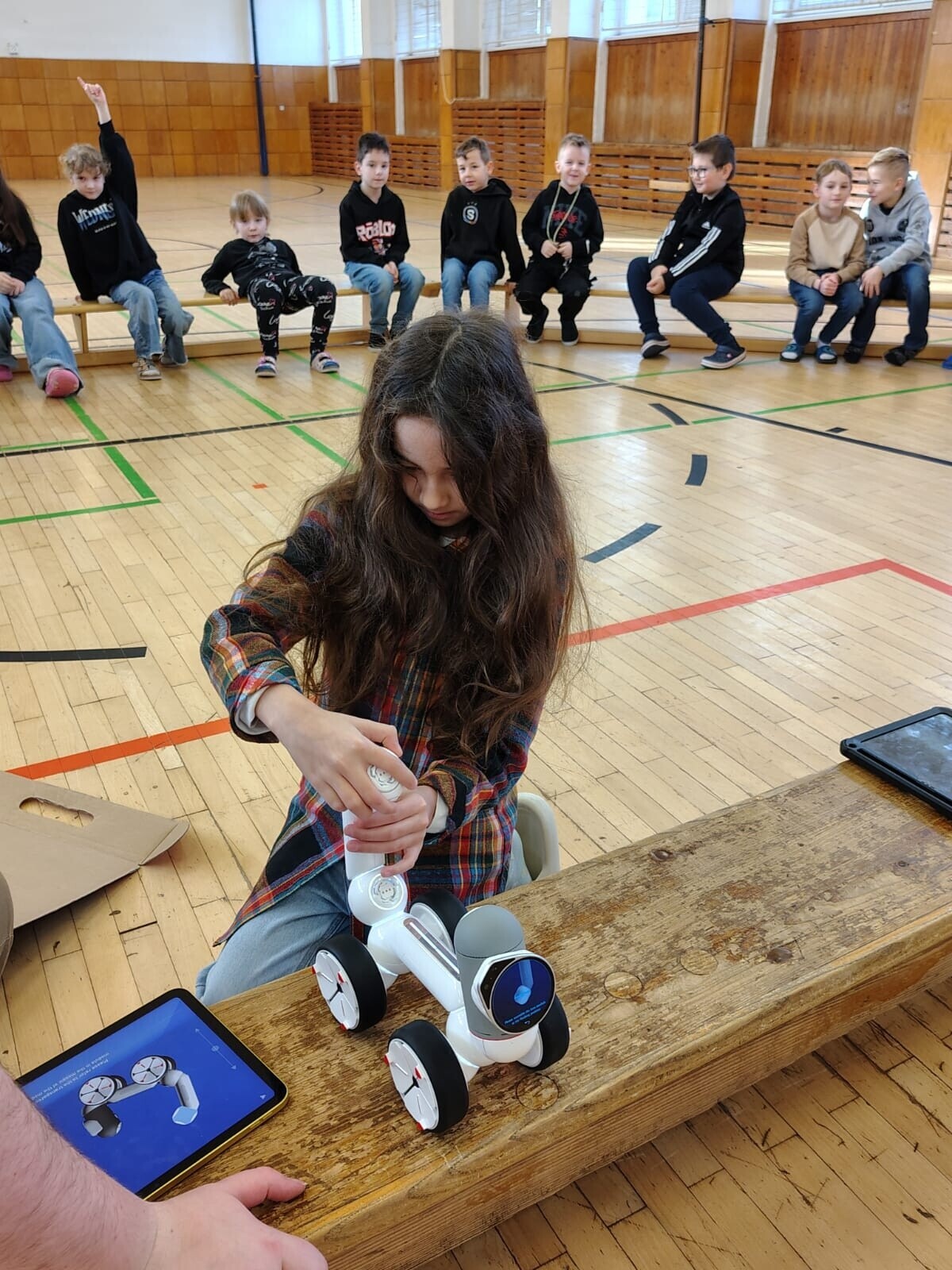 Žáci si vyzkoušeli interaktivní kontakt s Loonou i sestavování a základy programování Clicbota.