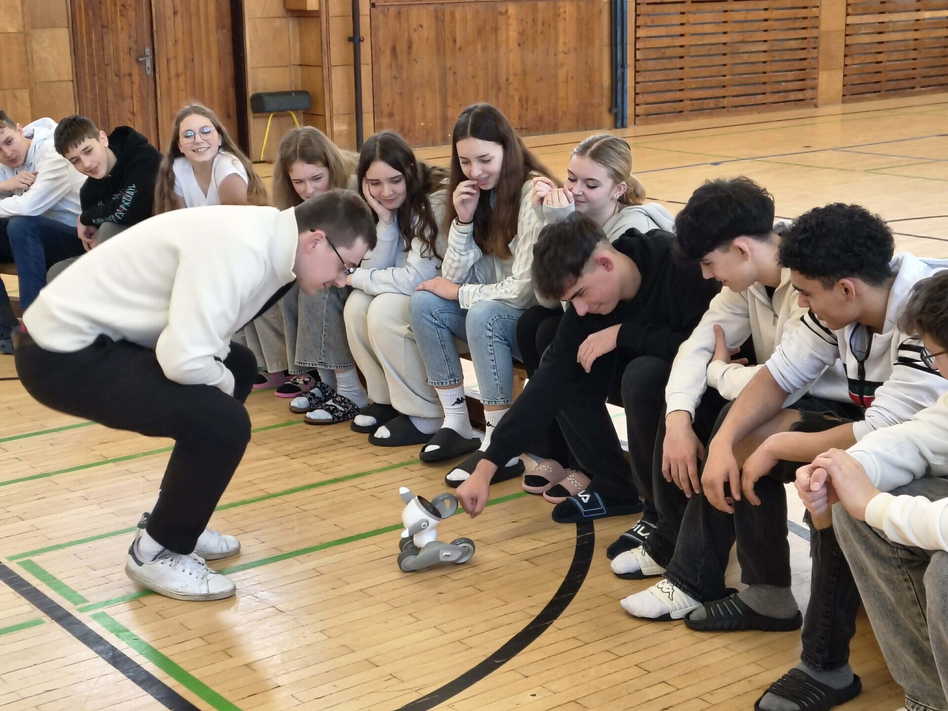 Ve čtvrtek se věnovali žákům prvního a v pátek žákům druhého stupně. Po úvodní diskusi, kde všude se v běžném životě mohou děti s roboty setkat, předvedli mladí zástupci firmy dva roboty – Loonu a Clicbota.